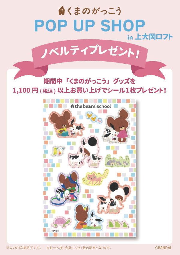 上大岡ロフトにて、くまのがっこうPOP UP SHOP in 上大岡ロフトを開催します!