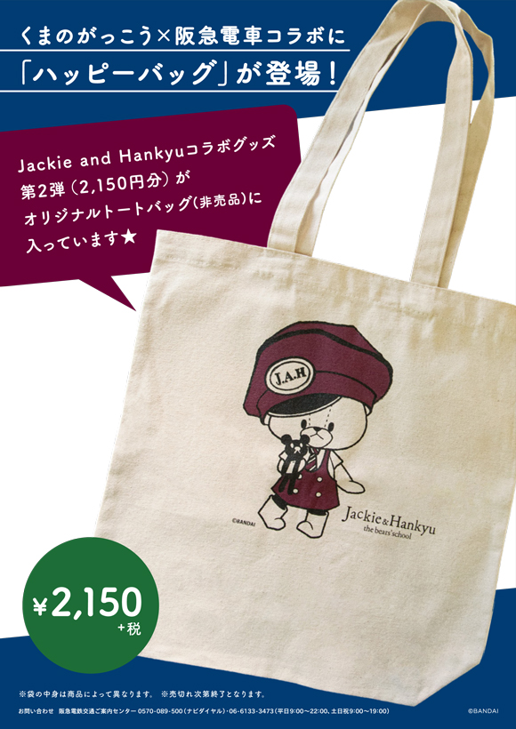 とっても可愛い駅長さんジャッキーがプリントされたバッグ(非売品)にコラボ企画第2弾の商品(2,150円分)が入って登場します!