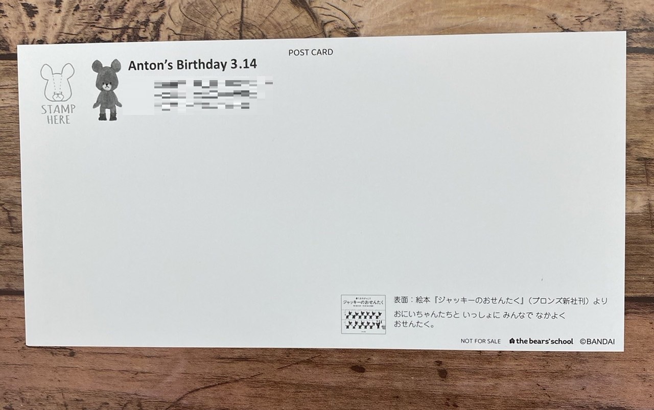 絵本「くまのがっこう」のワンシーンをそのまま楽しめるデザイン♪裏面にどんなことが書かれているかはお店でもらってからのおたのしみ![]()