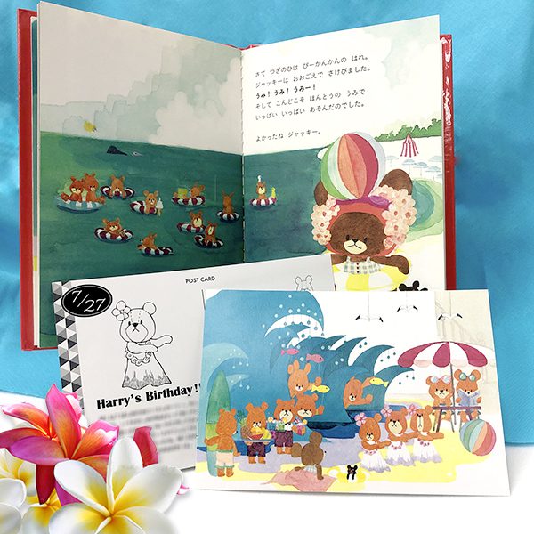 ポストカードの裏面には、「くまのがっこう」の作家あいはら先生が、このバースデイカードのためにひとつひとつ書き下ろしてくれた紹介ストーリーが載っているんです![]()