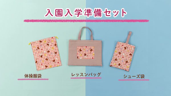 ミシンを使った作り方動画サービス「ソーイングオアシス」にて、入園入学準備セットの3点(体操服袋・レッスンバッグ・シューズ袋)の作り方をご紹介!